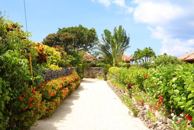 Al caminar por la carretera de arena blanca —con muros de piedra y tejados rojos— te sentirás sobrecogido por la belleza del paisaje. Busca las estatuas de leones shisa, que protegen de los malos espíritus.