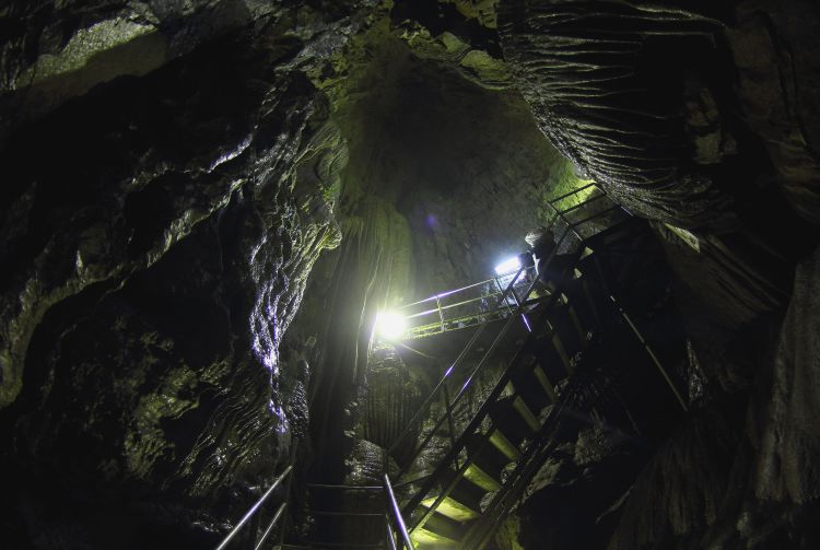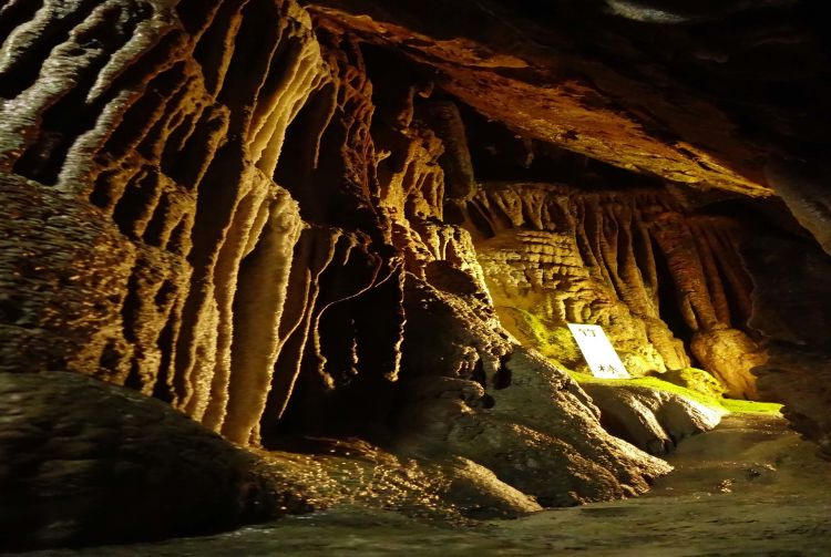 La cueva es enorme. La entrada está a 240 metros de altura en los acantilados de piedra caliza de la ladera de la montaña. Los corredores se extienden, serpenteantes, unos 1200 metros y en algunos puntos el techo llega a alcanzar los 90 metros de altura. Las estalactitas y los otros elementos de la caverna están iluminados para llamar la atención sobre sus detalles y dar un toque misterioso al ambiente.