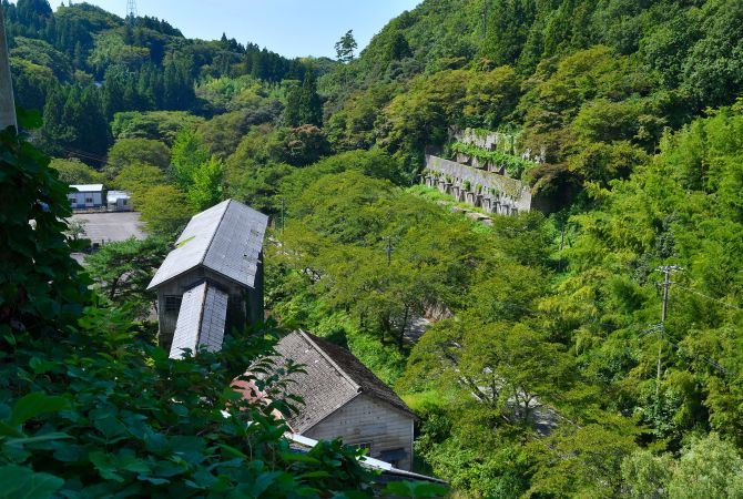 La mine d'or et d'argent d'Aikawa est caractéristique des nombreuses mines d'or et d'argent de l'île de Sado