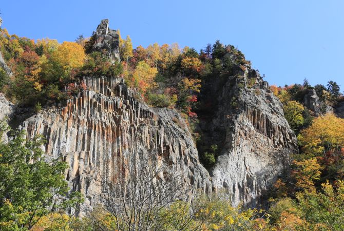 Faisant partie du parc national de Daisetsuzan , la région de Sounkyo comprend une série de gorges entourées de falaises de 100 mètres de haut. La région est particulièrement belle en automne et vous pouvez faire des randonnées guidées pendant la majeure partie de l'année. Nichée dans la vallée se trouve une station balnéaire du même nom qui fait partie d'une zone touristique de sources thermales.