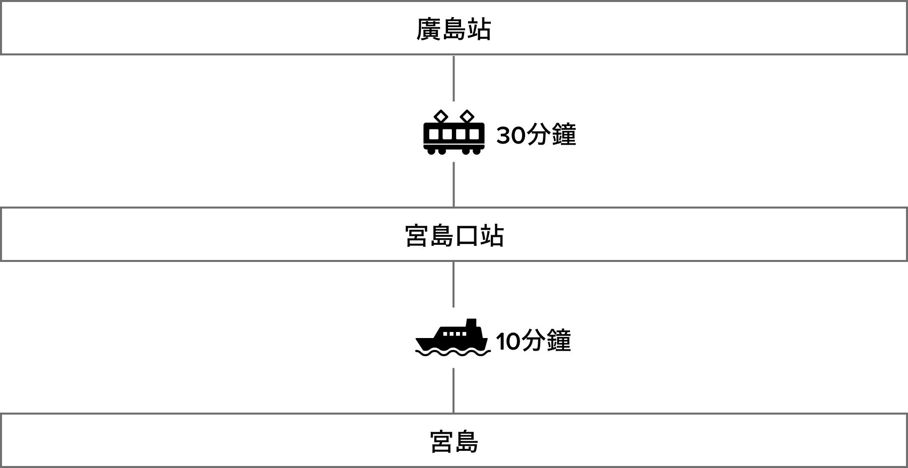 | 從廣島出發 | 40 分鐘-1 小時 |